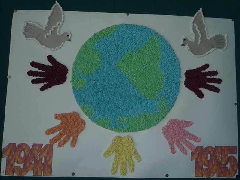05.05.2017 г. ФОТООТЧЁТ к 9 МАЯ. Коллективная аппликация из волшебных комочков. Тема: "МЫ ЗА МИР!"